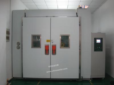 采用PLC溫度模塊或PID儀表控制,溫度到達產品所需要溫度后,根據室內溫度波動自動調節(jié)加熱器功率大小配合保溫庫板的保溫性,使室內溫度精確穩(wěn)定在所設定溫度數(shù)值可在指定的時間內內將室溫加至設定溫度,當溫度升至設定值時加熱器停止加熱.加熱器具有過熱保護裝置(EGO),如客戶自身產品發(fā)熱則采用過熱排風系統(tǒng),發(fā)熱量小采用電動百葉自動負壓排風,發(fā)熱量大則采用低噪音風機排風,用變頻器控制其轉速。